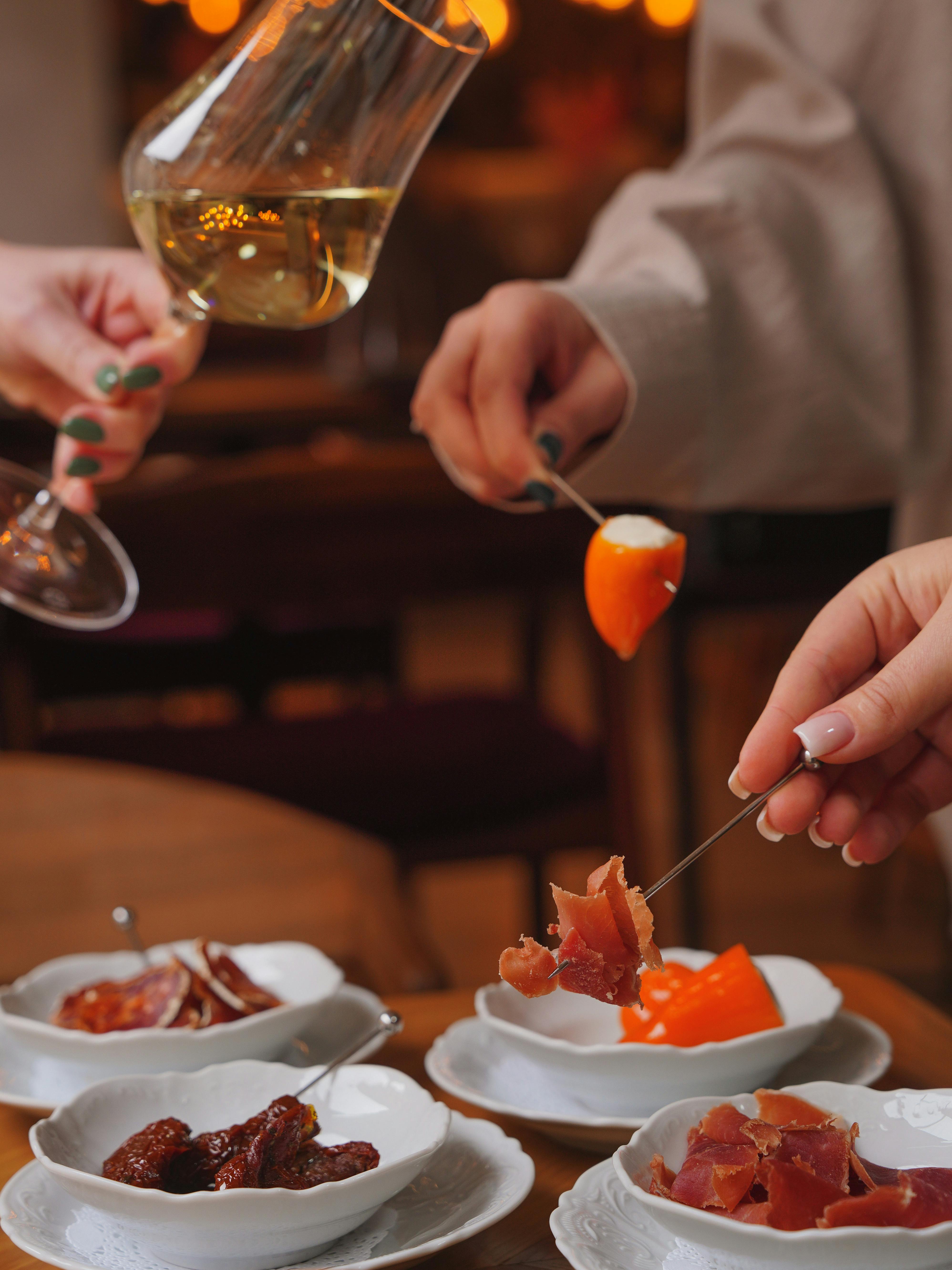 Natuurlijk serveren we daar ook eenvoudige, bijpassende hapjes bij, maar de wijn speelt altijd de hoofdrol.